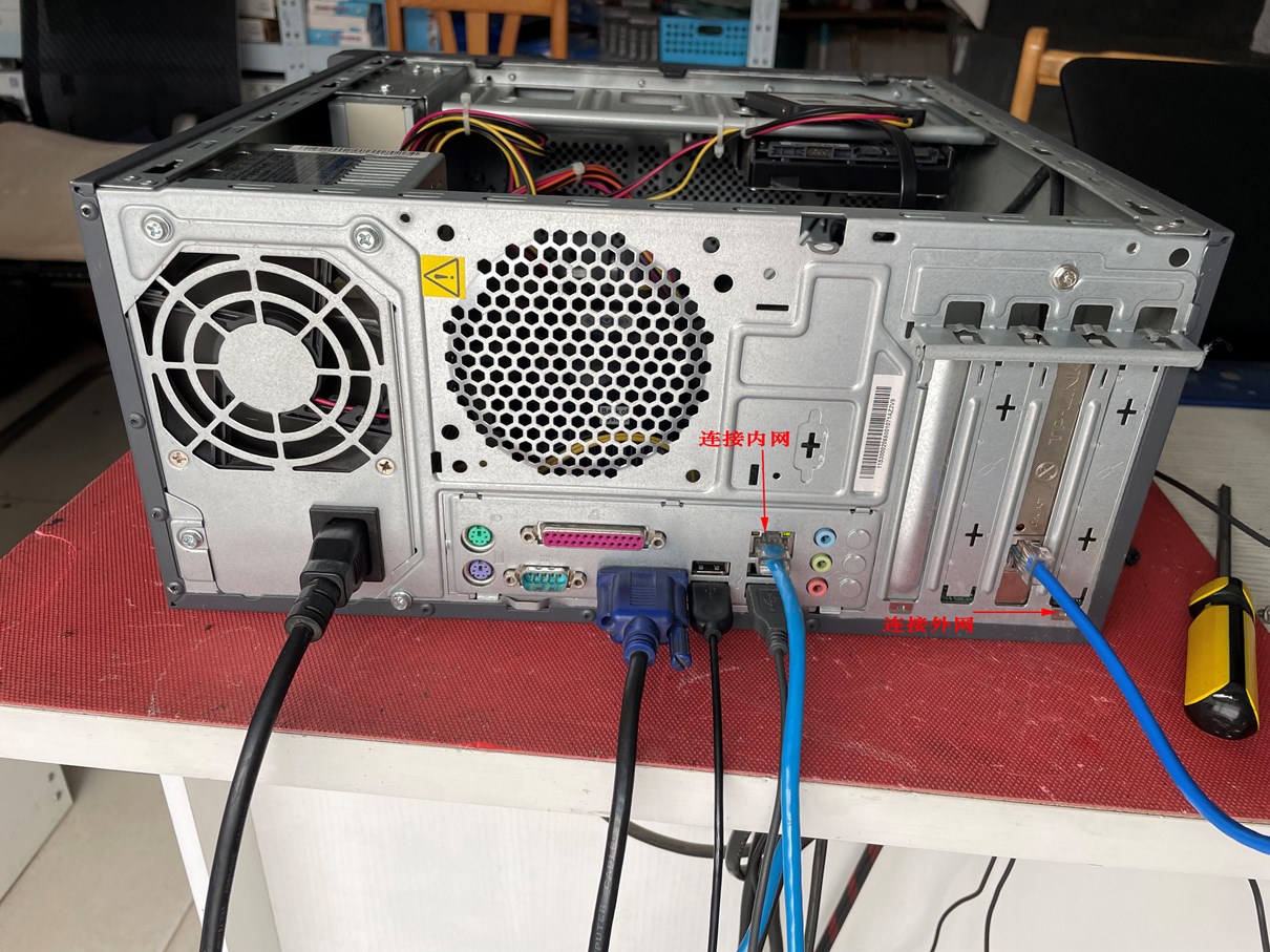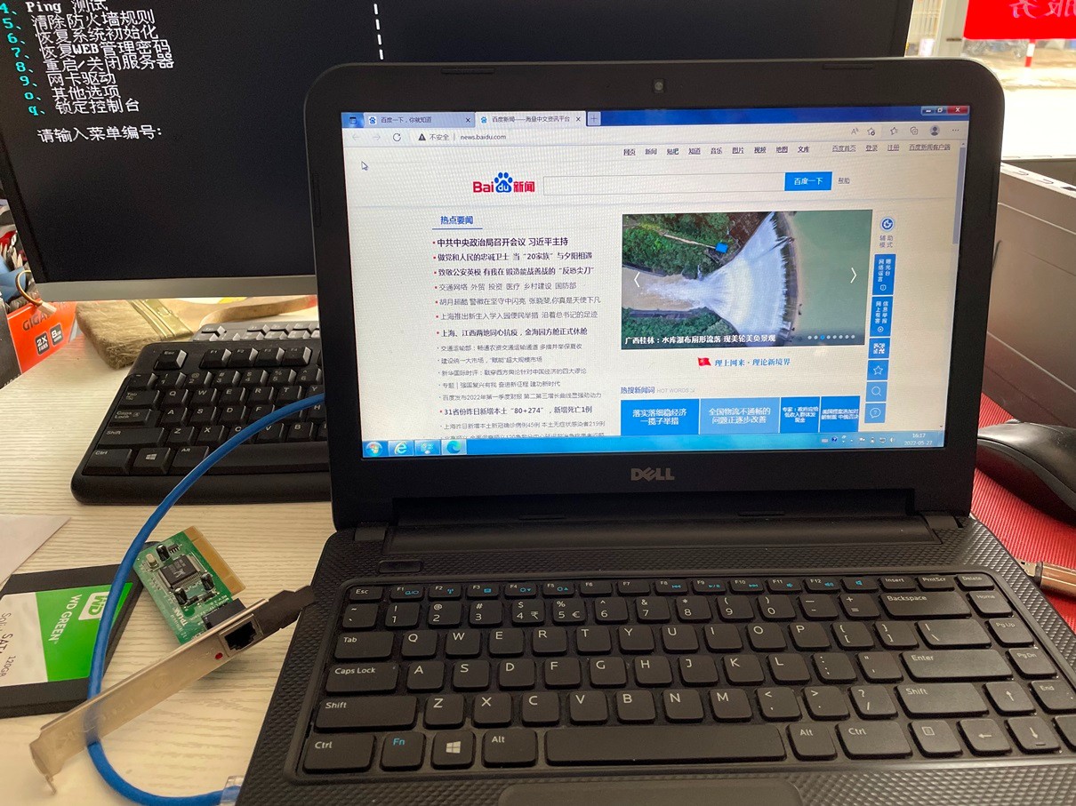 主板自带的网卡连接内网做调试用。安装好系统后,用笔记本电脑调试,搞了好长时间,