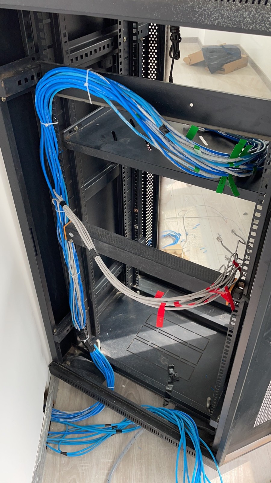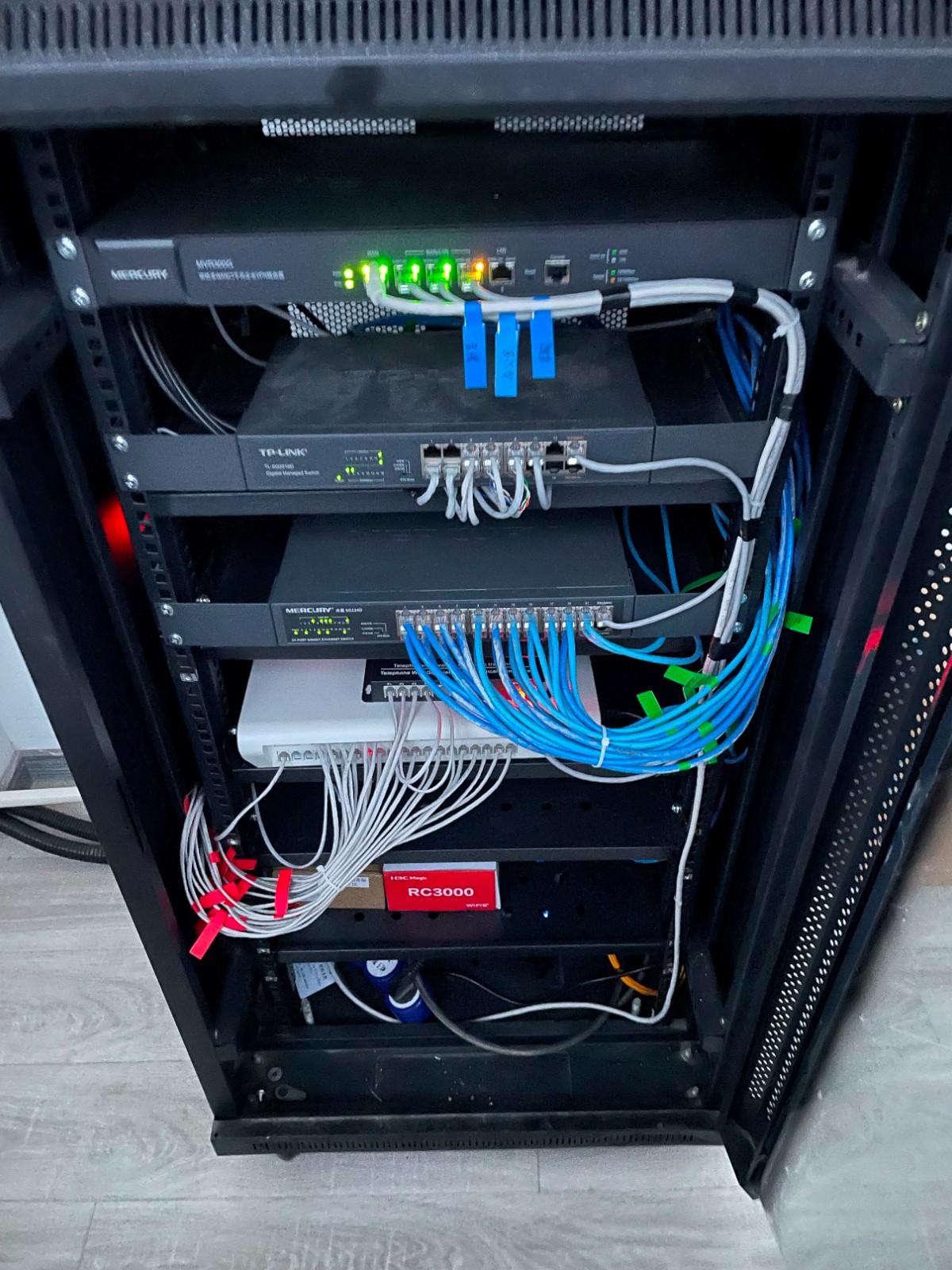 昆山这边工厂里,大干13天,网络布线、电话布线、监控摄像头布线基本完成。由于距离远,点面多,我们采用光缆解决问题,一共拉了四根光缆。针对监控网络有可能会影响办公网络,我们采用分开光缆,监控和办公网络各拉一根光缆,无线AP采用面板式无线AP,整个厂区只有一个无线信号,走到哪里信号都是满满的,效果蛮好,现在就等客户验收通过,过几天安装调试摄像头。
