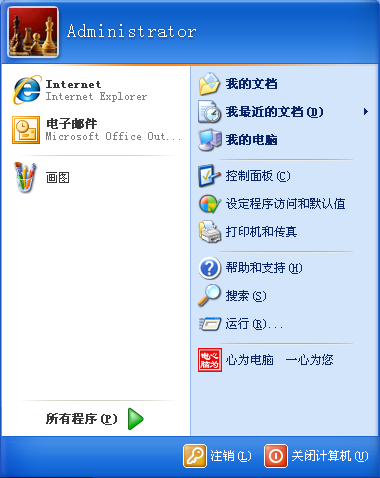 开始菜单有“心为电脑 一心为您”