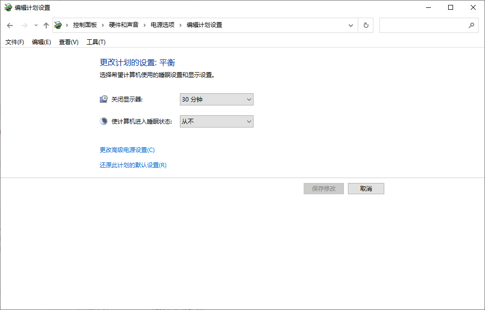 更改显示器及系统电源计划