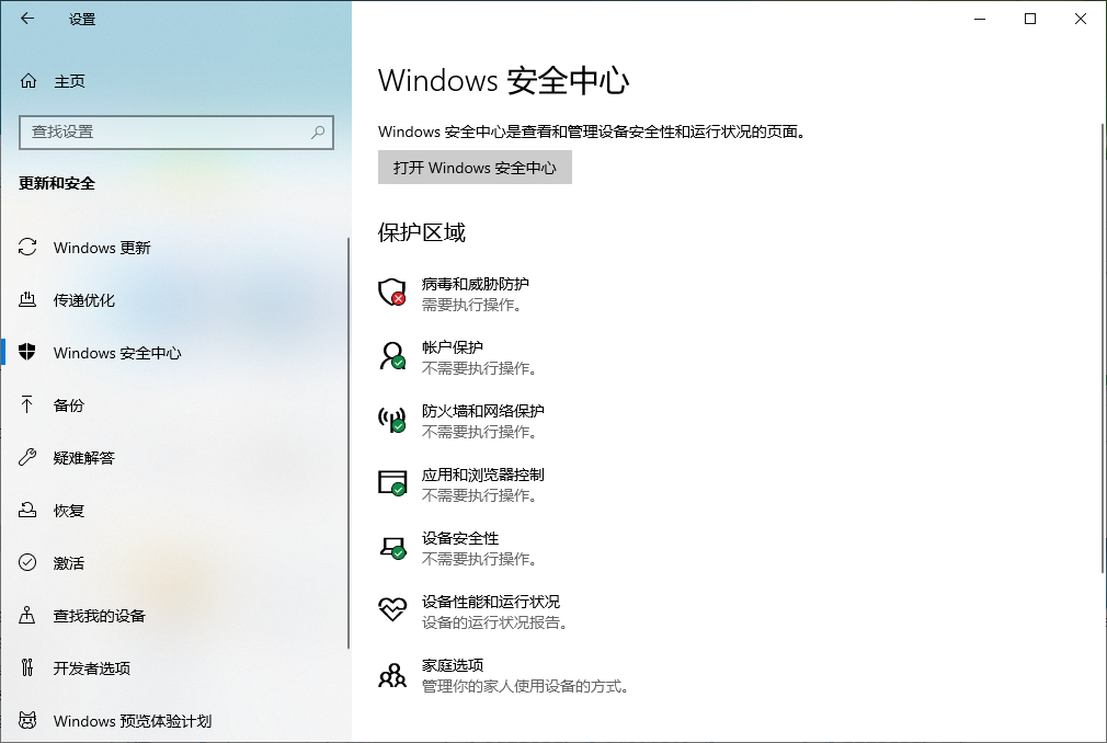 默认开启系统自带杀毒软件