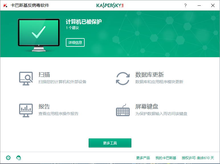 推荐使用卡巴斯基杀毒软件