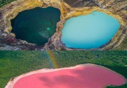 印度尼西亚被誉为赤道上的一串翡翠,最吸引人的就是远近闻名的三色湖,由火山喷发形成。三色湖最大的湖体呈海红色,在它旁边的火山湖则是呈浅蓝色,而另一个火山湖与这两个湖的距离则是稍微远一点,湖水的整体颜色呈乳白色。你从天空俯视它们,会不由感叹自然的神奇与奇妙!