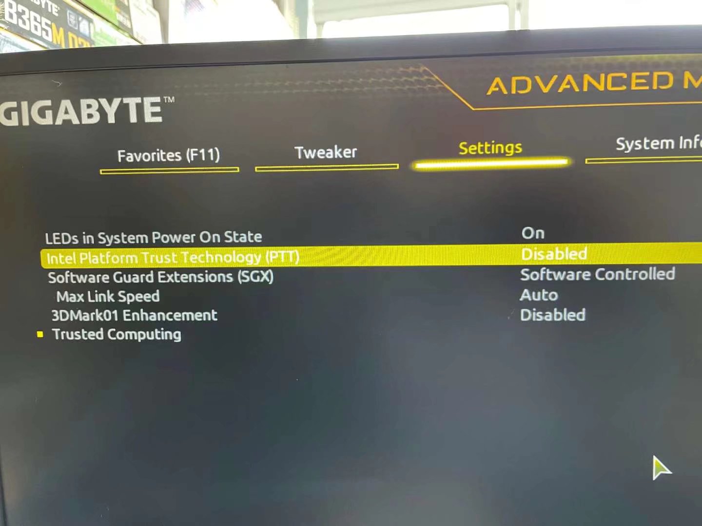 网上搜索说要到主板BIOS设置一下 TPM 为 PTT,重启电脑找到技嘉主板设置开启PTT,安装顺利通过,全程再无磕绊