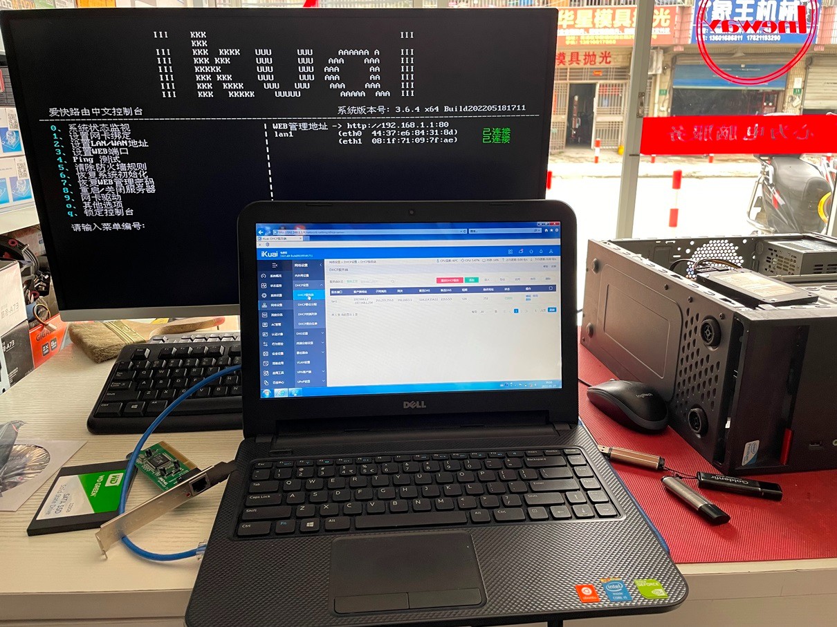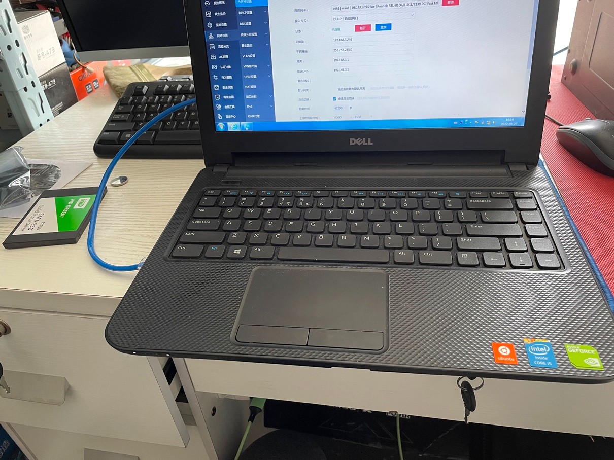 主板自带的网卡连接内网做调试用。安装好系统后,用笔记本电脑调试,搞了好长时间,