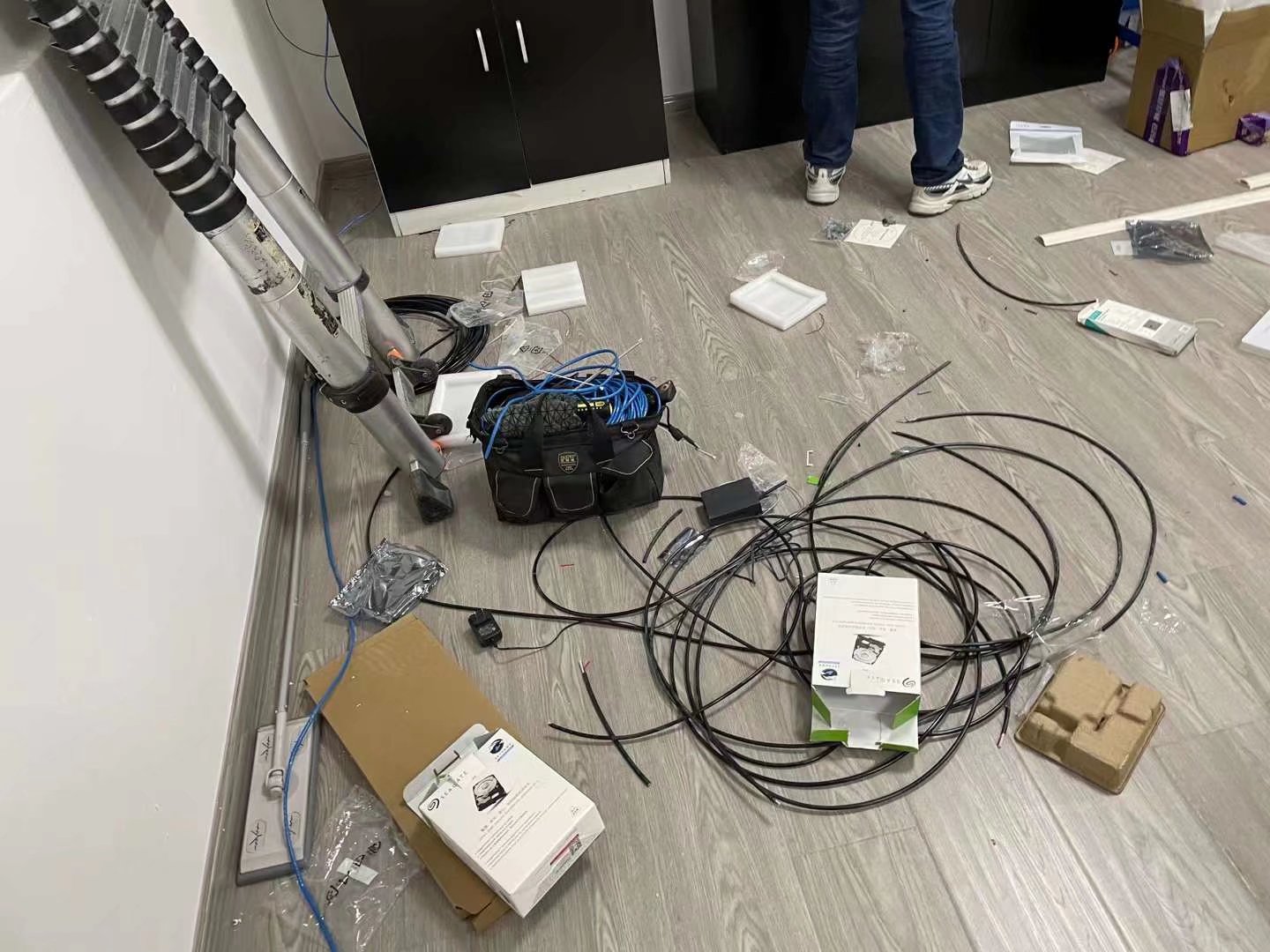 昆山淞南路工厂里,大干三天,32路录像机再加一个8路录像机的摄像头,全部搞好搞到位,效果满好